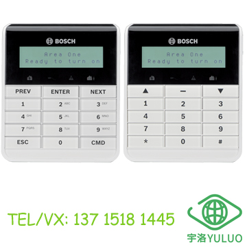 B915/B915I 基础键盘是一种 SDI2 总线兼容设备。每个键盘均具有用户可调整的选项,如音量和显示屏亮度。键盘可针对所有区域显示两行系统消息。